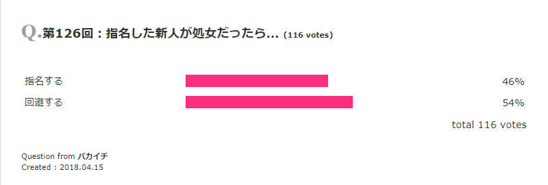 実数では、回避を選択される方がやや多い結果となりました。この辺りの微妙な差は「日本人男性が持つ処女信仰」が影響しているのでしょうか。
